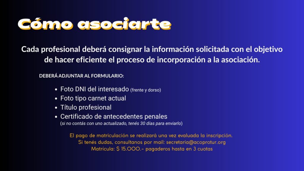 Si sos profesional del turismo en Córdoba, estudiante o simplemente querés conocer más sobre nuestras actividades, capacitaciones y propuestas, escribinos. Nuestro equipo está disponible para responder todas tus consultas y acompañarte en lo que necesites.